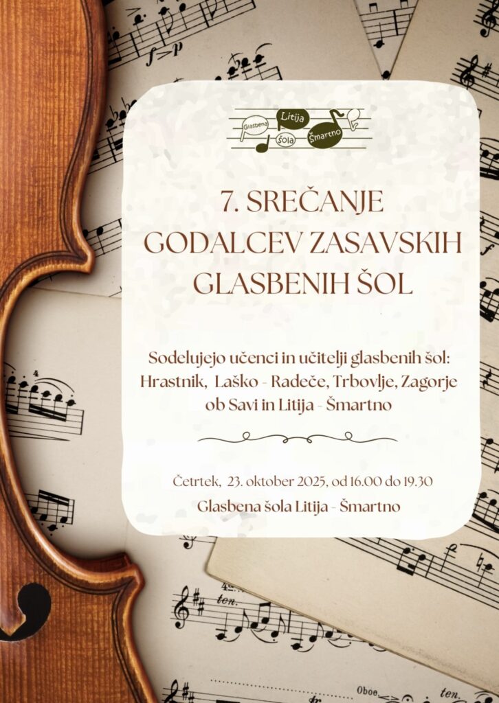 Vabljeni na koncert udeležencev srečanja godalcev, ki bo v četrtek, 23. oktobra ob 19. uri, v dvorani Glasbene šole Litija-Šmartno!