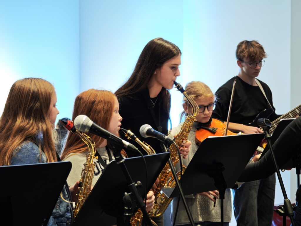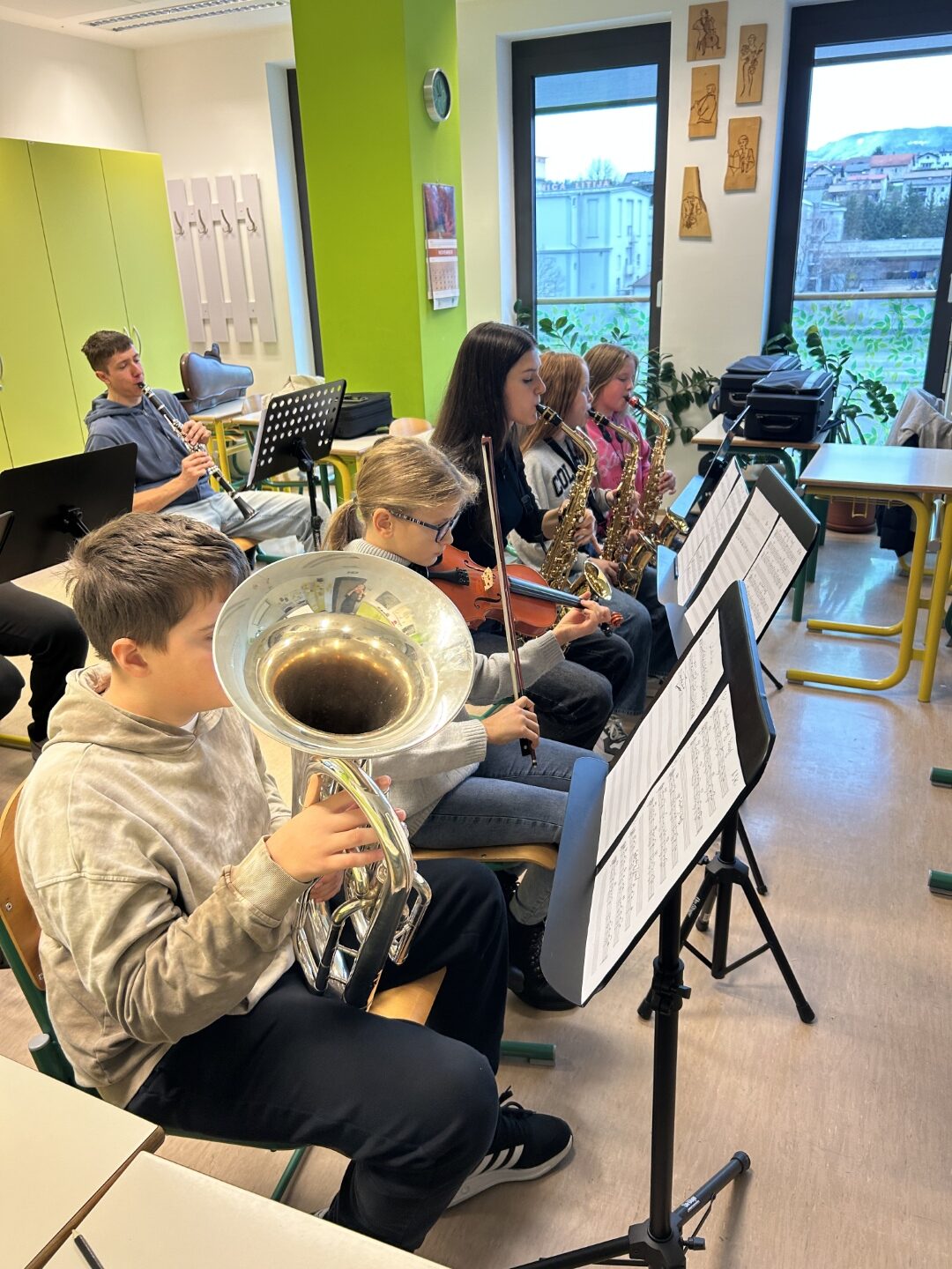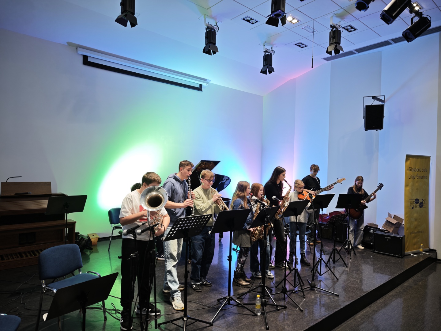 V soboto, 22. novembra 2025, smo na naši šoli uspešno izvedli delavnico jazz in zabavne glasbe. Dogodka se je udeležilo 28 glasbenikov iz različnih krajev Slovenije ter sosednje Hrvaške.