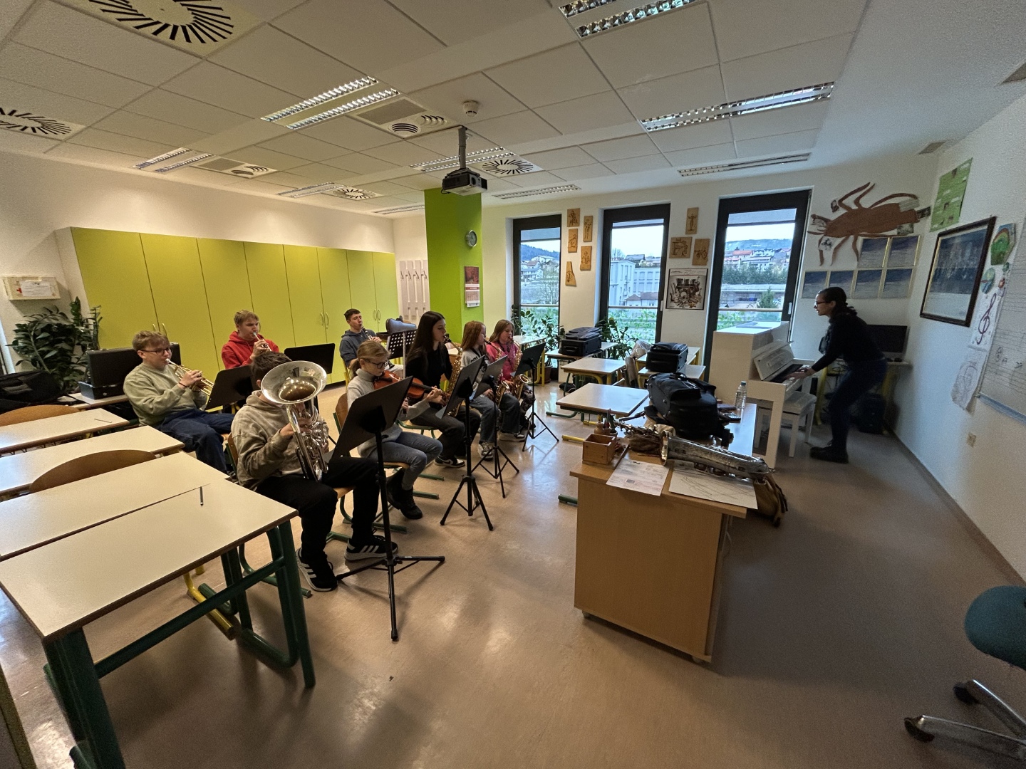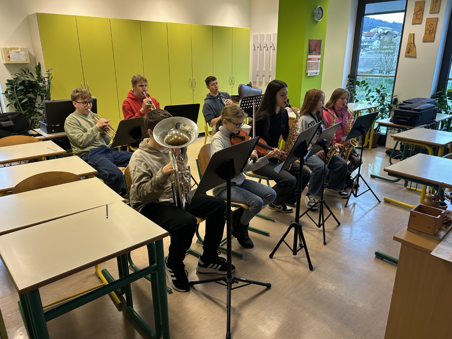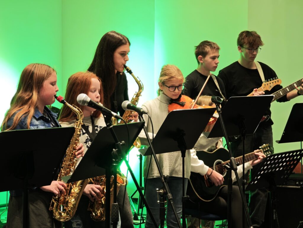 V soboto, 22. novembra 2025, smo na naši šoli uspešno izvedli delavnico jazz in zabavne glasbe. Dogodka se je udeležilo 28 glasbenikov iz različnih krajev Slovenije ter sosednje Hrvaške.