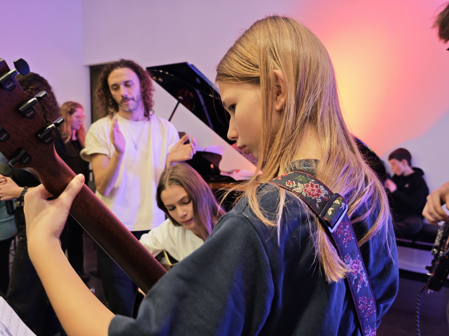 Dopoldne so udeleženci ustvarjali v manjših skupinah pod vodstvom mentorjev, popoldanski del pa je bil namenjen povezovanju in skupnemu muziciranju. Vrhunec dneva je bil večerni koncert, na katerem so se vsi nastopajoči združili na odru in pokazali, kaj so se naučili.