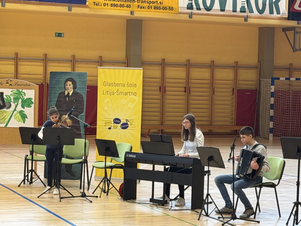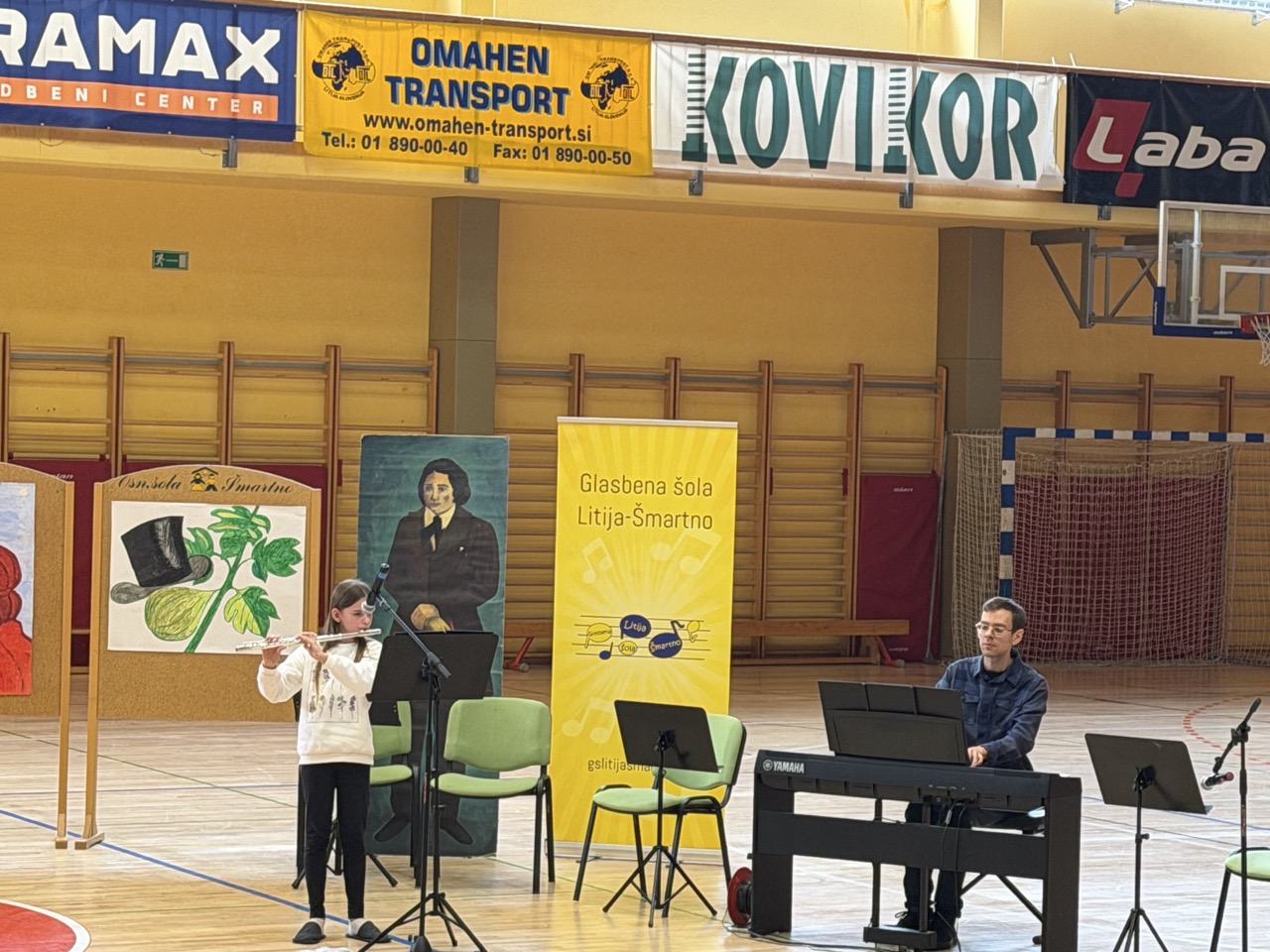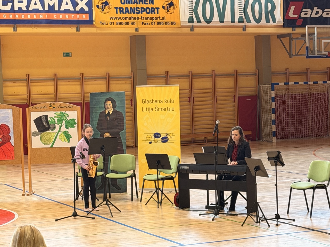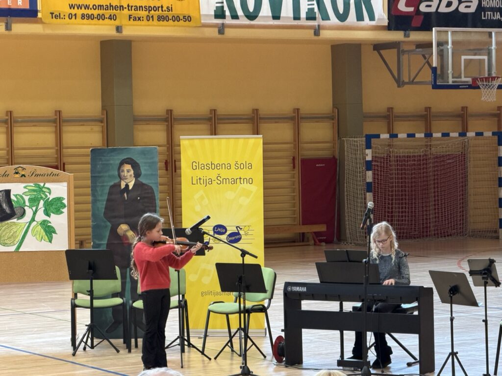 V petek, 6. februarja 2026 smo v njihovi športni dvorani izvedli nastop v katerem so se predstavili učenci OŠ Šmartno in učenci naše glasbene šole.