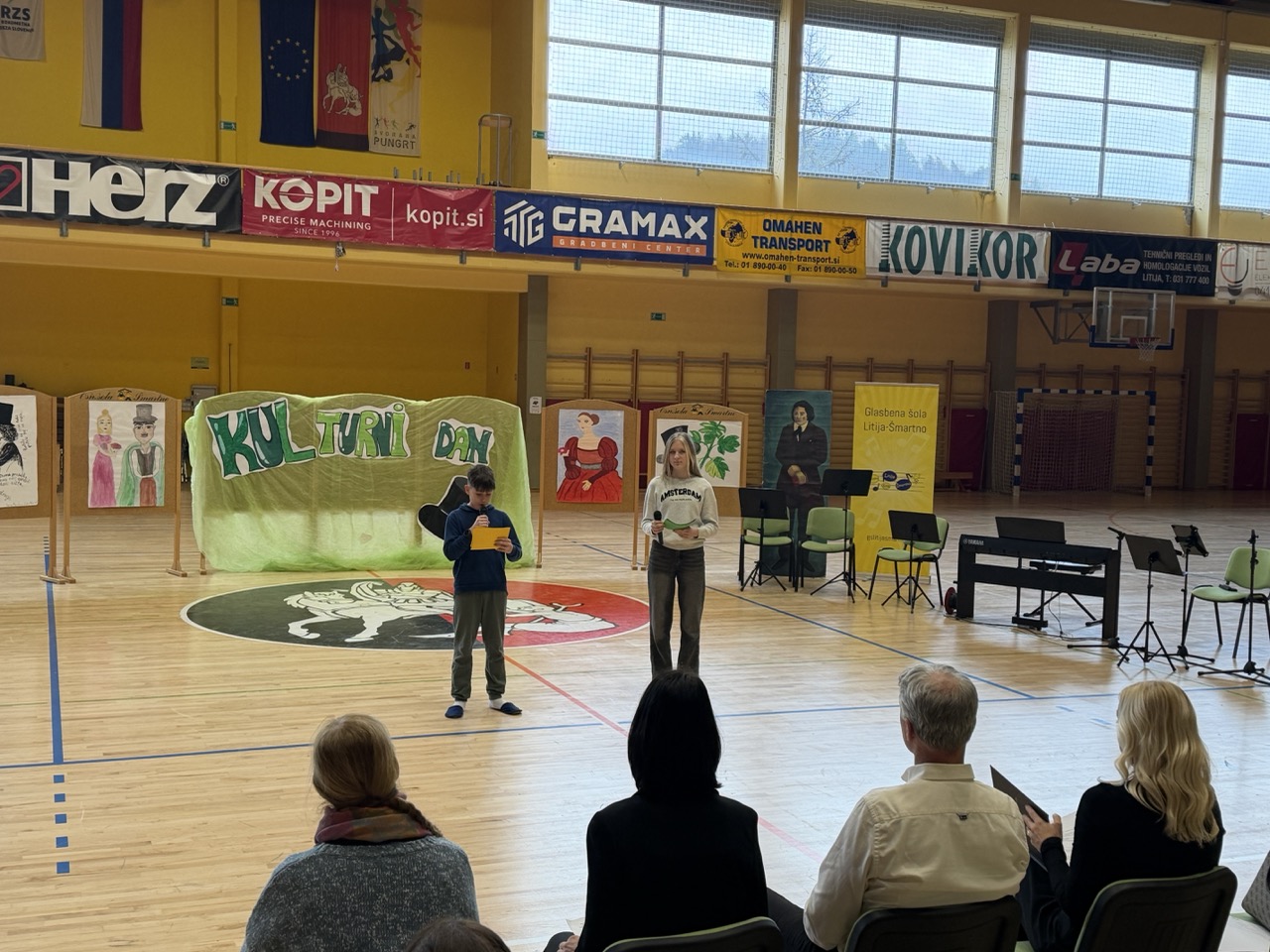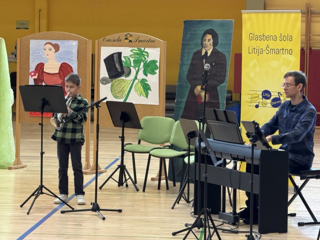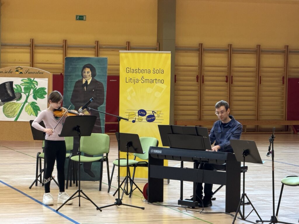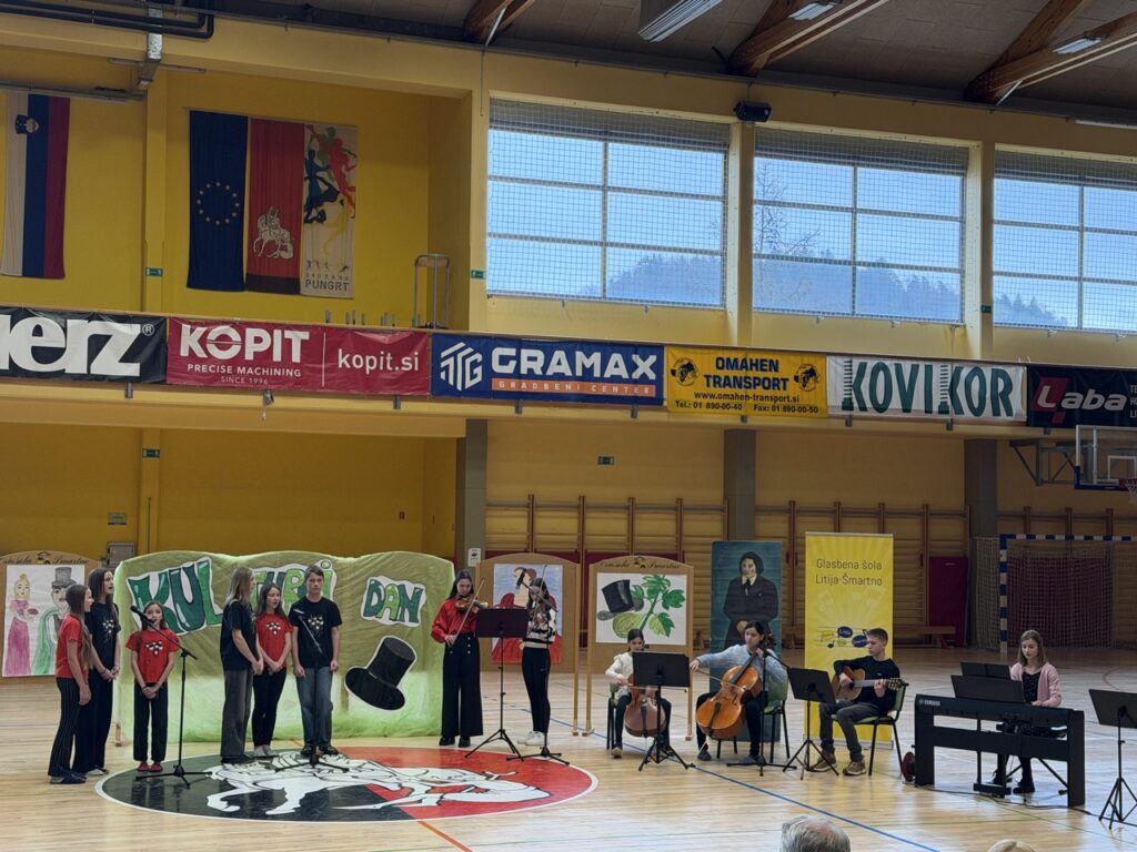 V petek, 6. februarja 2026 smo v njihovi športni dvorani izvedli nastop v katerem so se predstavili učenci OŠ Šmartno in učenci naše glasbene šole.