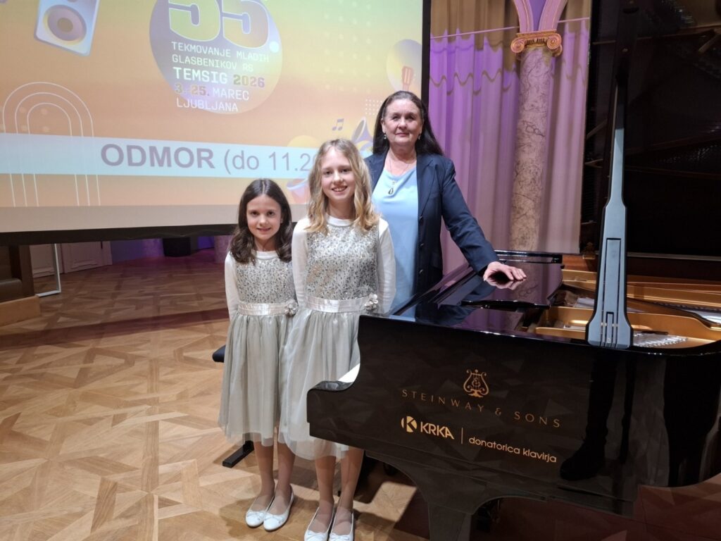 Danes, 14. marca 2026, sta se naši pianistki Evelina in Hana Štaut udeležili državnega tekmovaja TEMSIG, v disciplini klavirski duo.